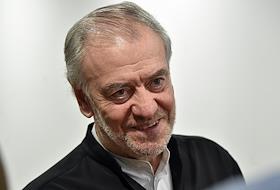 Празднование 872-годовщины основания города Москвы. Художественный руководитель Мариинского театра, дирижер Валерий Гергиев (слева) перед началом концерта оркестра Мариинского театр, посвященного открытию сезона зала "Зарядье".
