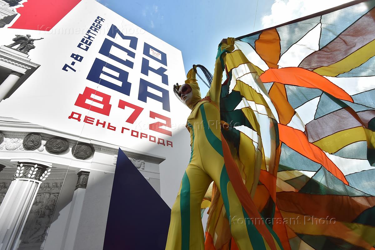 Празднование 872-годовщины основания города Москвы. День города на Тверской улице. Инсталляция к 80-летию ВДНХ.