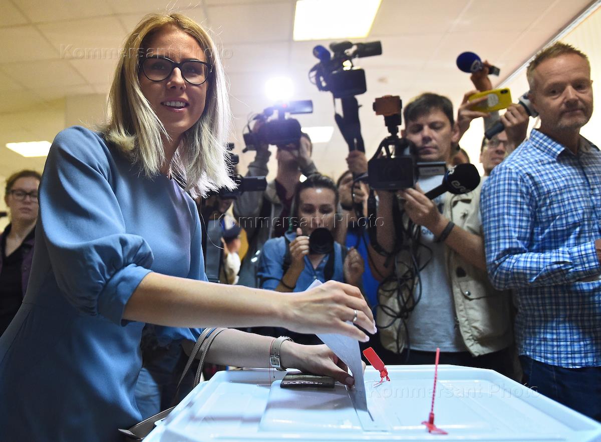 Единый день голосования. Выборы депутатов в Московскую городскую думу VII созыва. Незарегистрированный кандидант в депутаты Московскую городскую думу, юрист "Фонда борьбы с коррупцией" (ФБК) Любовь Соболь во время голосования на УИК 1780.