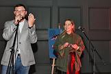Вечеринка Международной ярмарки современного искусства Cosmoscow "В доме коллекционера" в ресторане Blanc. Директор Cosmoscow Маргарита Пушкина (справа) и исполнительный директор Московского музея современного искусства (ММСИ) Василий Церетели (слева) во время вечеринки.