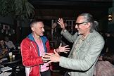 Вечеринка Международной ярмарки современного искусства Cosmoscow "В доме коллекционера" в ресторане Blanc. Художник Дмитрий Семаков (справа) во время вечеринки.