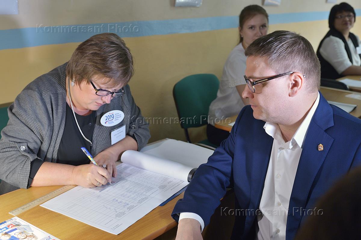 Single Voting Day. Elections of Governor of Chelyabinsk Region. Acting Governor of the Chelyabinsk Region Alexei Teksler voting at a polling station.