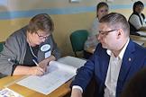 Single Voting Day. Elections of Governor of Chelyabinsk Region. Genre photo. Ballots at a polling station.