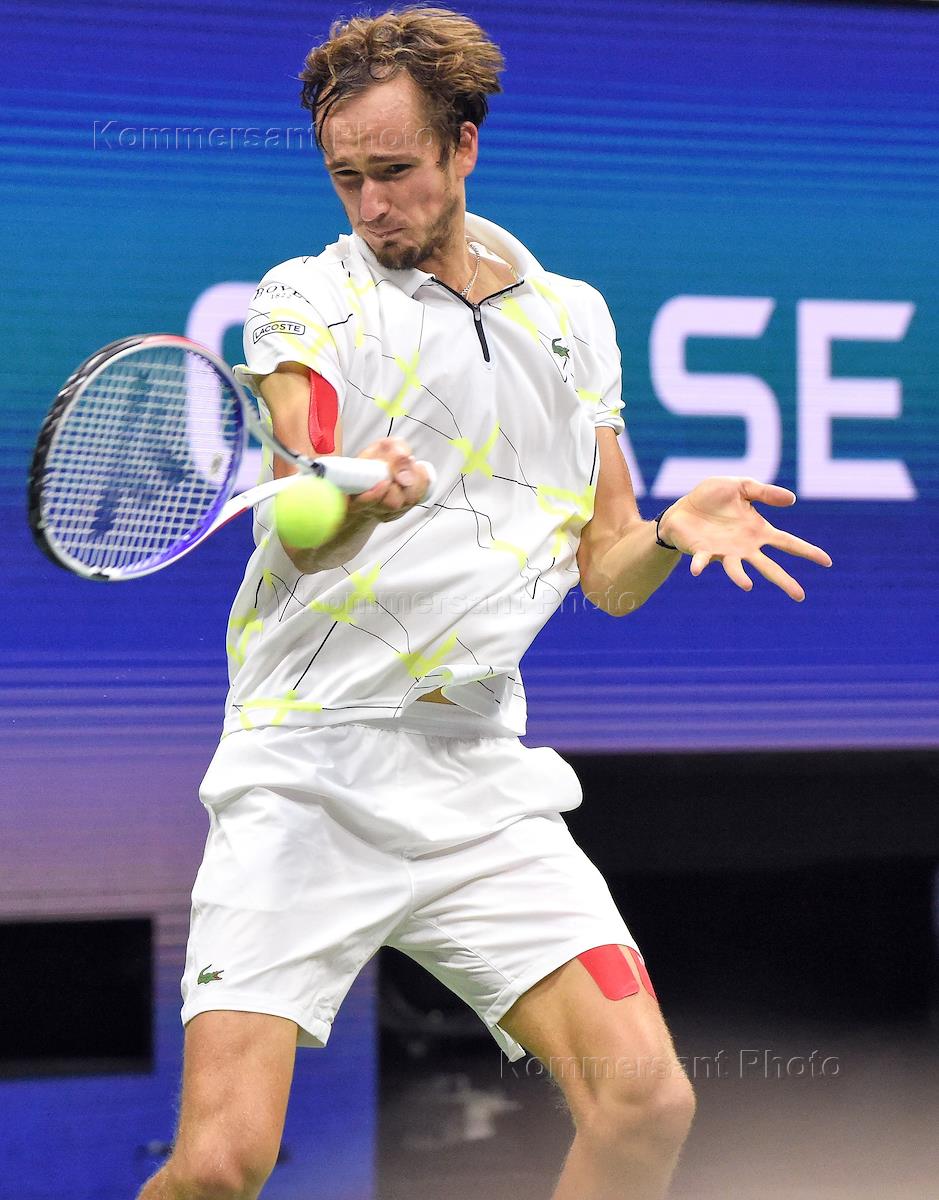 Открытый чемпионат США (US Open) 2019 по теннису. Финал. Мужчины. Российский теннисист даниил Медведев во время матча с испанским теннисистом Рафаэлем Надалем.