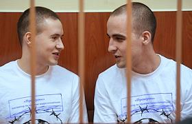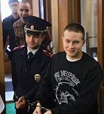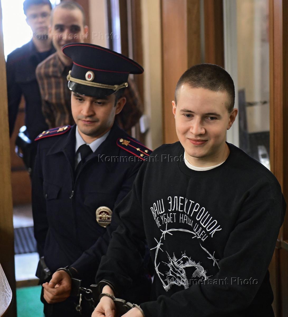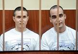 Обвиняемые по делу организации "Сеть" гражданин Казахстана Виктор Филинков (слева) и Юлий Бояршинов (справа) в помещении 224 гарнизонного военного суда.