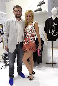 Коктейль по случаю запуска новой коллекции Jimmy Choo в ЦУМе. Исполнительный директор Московского музея современного искусства (ММСИ) Василий Церетели (слева) и модельер Кира Сакарелло (справа) на коктейле.