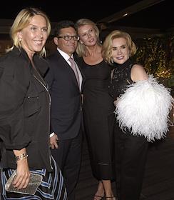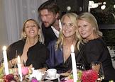 Торжественный ужин по случаю запуска новой коллекции Jimmy Choo в ЦУМе. Слева направо: владелица сети салонов Jean Louis David Татьяна Рогаченко, первый заместитель генерального директора ОАО "ГТЛК" ("Государственная транспортная лизинговая компания") Антон Борисевич, коллекционер Виктория Борисевич и совладелица танцевального клуба Gala Dance Ольга Панченко на ужине.