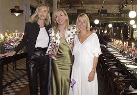 Торжественный ужин по случаю запуска новой коллекции Jimmy Choo в ЦУМе. Слева направо: продюсер Яна Рудковская, основательница сайта peopletalk.ru Лаура Джугелия и ресторатор Дина Хабирова на ужине.