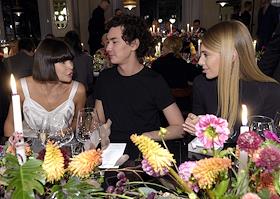 Торжественный ужин по случаю запуска новой коллекции Jimmy Choo в ЦУМе. Слева направо: супруга совладельца компании "Капитал груп" Эдуарда Бермана Инга Берман, светский редактор Tatler Ариан Романовский и модель Ясмина Муратович на ужине.