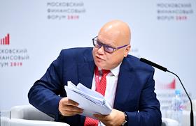 Московский финансовый форум 2019 прошел в центральном выставочном зале (ЦВЗ) "Манеж". Заместитель министра финансов России Алексей Лавров во время работы форума.
