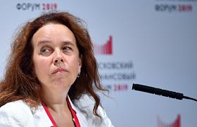 Московский финансовый форум 2019 в Центральном выставочном зале "Манеж". Член Общественной палаты России, председатель Общественного совета при Министерстве труда и социальной защиты России Елена Тополева-Солдунова во время форума.