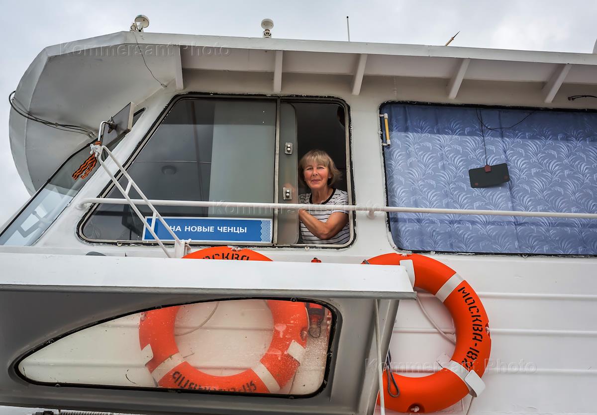 Капитан теплохода "Москва - 182" Марина Гаврилова на теплоходе.