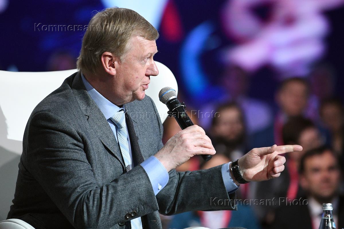 Московский финансовый форум 2019 в Центральном выставочном зале "Манеж". Председатель правления ООО "УК "РОСНАНО", председатель правления Фонда инфраструктурных и образовательных программ (ФИОП) Анатолий Чубайс во время пленарной сессии "Экономические реформы в России: эволюция и сегодняшние приоритеты".