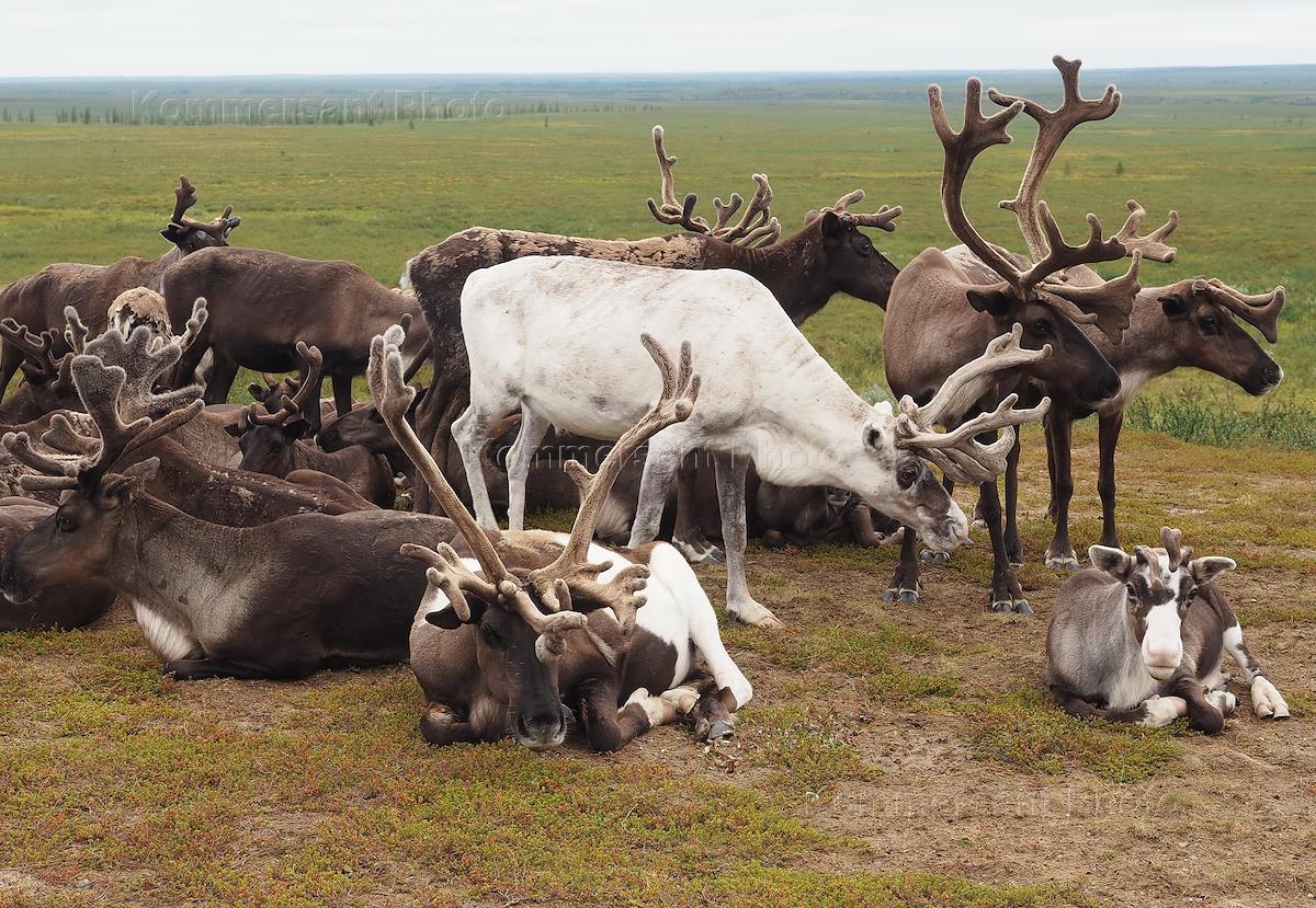 Приуральский район. Стойбище оленеводов хантов в тунде. Олени крупным планом.