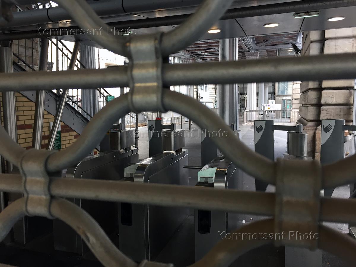 Транспортная забастовка в Париже. Закрытые проходы через турникеты на железнодорожную станция.