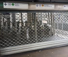 Транспортная забастовка в Париже. Закрытые двери входа на станцию метро.