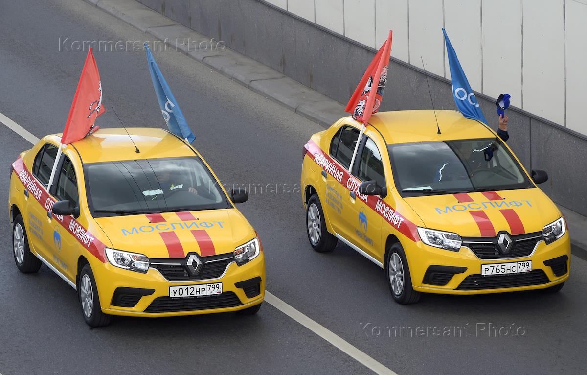 Парад и выставка городской техники на проспекте Сахарова. Коммунальный автомобили "Мослифт" на параде.