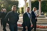 Официальные мероприятия, посвященные 100-летию Музея-усадьбы "Архангельское". Заместитель председателя правительства России Дмитрий Козак (слева) и директор усадьбы "Архангельское" Вадим Задорожный (в центре) во время осмотра территории музея после реставрации.