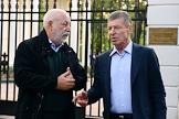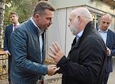 Официальные мероприятия, посвященные 100-летию Музея-усадьбы "Архангельское". Члены попечительского совета Музея-усадьбы "Архангельское": директор Музея-усадьбы "Архангельское" Вадим Задорожный (слева) и председатель совета директоров АО "Группа компаний "Ренова"" Виктор Вексельберг (в центре) после осмотра территории музея после реставрации и участия в праздничных мероприятиях.