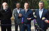 Официальные мероприятия, посвященные 100-летию Музея-усадьбы "Архангельское". Члены попечительского совета Музея-усадьбы "Архангельское" слева направо: председатель совета директоров АО "Группа компаний "Ренова"" Виктор Вексельберг, генеральный директор "Группы ЛСР" Андрей Молчанов, губернатор Московской области Андрей Воробьев и заместитель председателя правительства России Дмитрий Козак во время общения с журналистами после осмотра территории музея после реставрации и участия в праздничных мероприятиях.