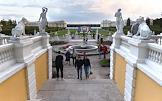 Официальные мероприятия, посвященные 100-летию Музея-усадьбы "Архангельское". Директор усадьбы "Архангельское" Вадим Задорожный (слева) и председатель совета директоров АО "Группа компаний "Ренова"" Виктор Вексельберг (второй справа) после осмотра территории музея после реставрации и участия в праздничных мероприятиях.
