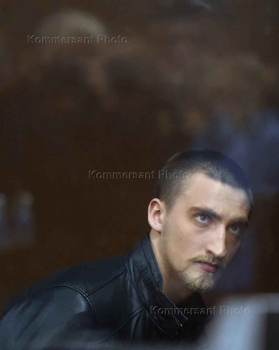 Оглашение приговора актеру Павлу Устинову, обвиняемому в нападении на бойца ОМОН в ходе несанкционированной акции протеста 3 августа, в Тверском районном суде. Актер Павел Устинов во время заседания суда.