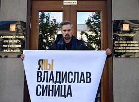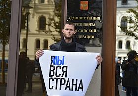 Одиночные пикеты в поддержку, актера, обвиняемого в нападении на бойца ОМОН в ходе несанкционированной акции протеста 3 августа 2019 года Павла Устинова, прошли у здания Администрации президента России.