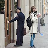Одиночные пикеты в поддержку, актера, обвиняемого в нападении на бойца ОМОН в ходе несанкционированной акции протеста 3 августа 2019 года Павла Устинова у здания Администрации президента России. Сотрудники полиции во время дежурства на пикете.