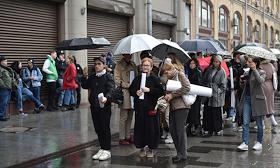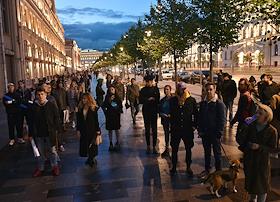 Одиночные пикеты в поддержку, актера Павла Устинова, обвиняемого в нападении на бойца ОМОН в ходе несанкционированной акции протеста 3 августа 2019 года, у здания Администрации президента России. Очередь в пикет.