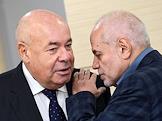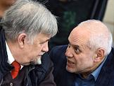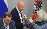Заседание Общественного штаба по контролю и наблюдению за выборами по итогам проведения единого дня голосования прошло в Московском парламентском центре. Специальный представитель Президента России по международному культурному сотрудничеству Михаил Швыдкой (слева) и депутат Московской городской думы Евгений Бунимович (справа) во время заседания.
