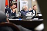 Заседание Общественного штаба по контролю и наблюдению за выборами по итогам проведения единого дня голосования прошло в Московском парламентском центре. Слева направо: президент Фонда информационной демократии Илья Массух, главный редактор радиостанции "Эхо Москвы" Алексей Венедиктов и заместитель руководителя департамента информационных технологий города Москвы Владислав Шишмарев во время заседания.