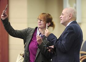 Первое заседание Московской городской думы VII созыва. Слева направо: депутаты Мосгордумы Сергей Митрохин, Дарья Беседина и Евгений Бунимович перед началом заседания.
