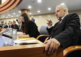Первое заседание Московской городской думы VII созыва. Депутаты Мосгордумы Олег Шереметьев (справа) во время заседания.