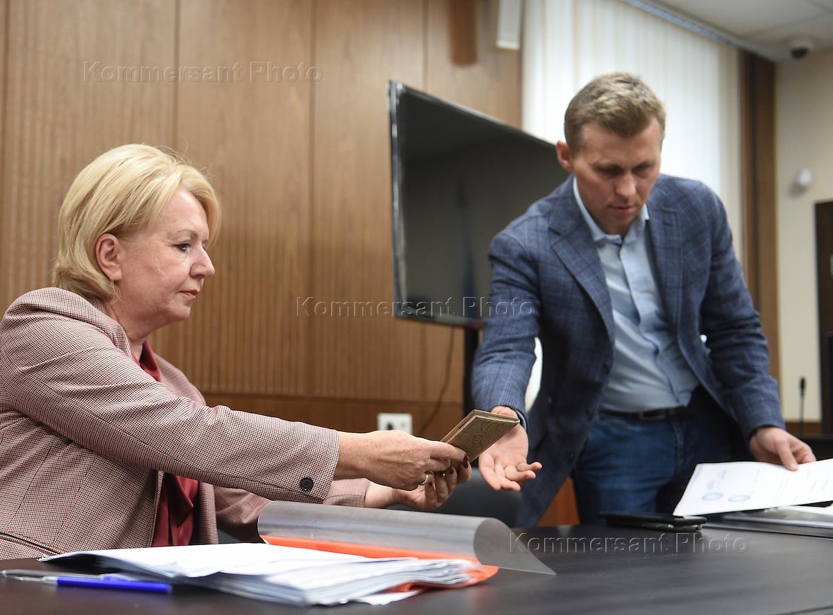 Председатель партии "Яблоко" Эмилия Слабунова (слева) во время заседания Тверского районного суда. Эмилия Слабунова подала иск к Генеральной прокуратуре России и прокуратуре Карелии за отказ проверять по существу раскопки Российского военно-исторического общества (РВИО) в Сандармохе.