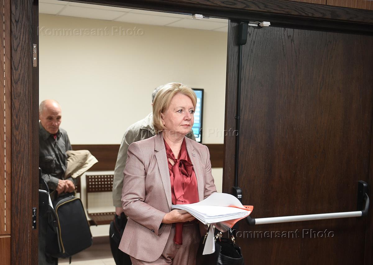Председатель партии "Яблоко" Эмилия Слабунова перед началом заседания Тверского районного суда. Эмилия Слабунова подала иск к Генеральной прокуратуре России и прокуратуре Карелии за отказ проверять по существу раскопки Российского военно-исторического общества (РВИО) в Сандармохе.