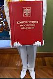 Торжественная церемония вступления в должность главы Республики Крым Сергеем Аксеновым в Государственном совете Республики Крым. Конституция Российской Федерации в руках военнослужащего группы Почетного караула во время церемонии.