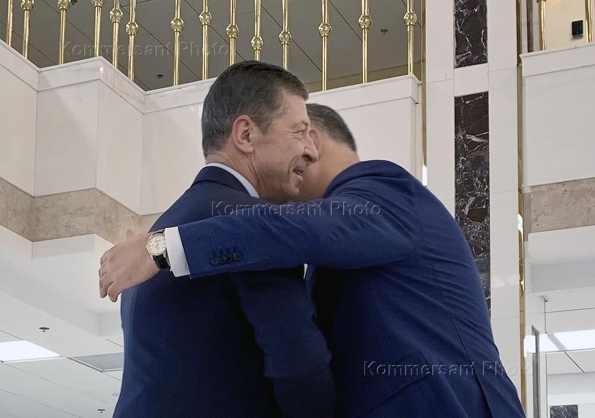 Визит заместителя председателя правительства России, спецпредставителя президента России по развитию торгово-экономических отношений с Молдовой Дмитрия Козака в Молдову. Заместитель председателя правительства России Дмитрий Козак (в центре) и президента Молдавии Игорь Додон (справа) во время встречи.