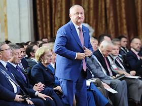 Рабочая поездка заместителя председателя Правительства России, спецпредставителя президента России по развитию торгово-экономических отношений с Молдавией Дмитрия Козака в республику Молдова. Президент Молдавии Игорь Додон (в центре) во время работы Молдо-российского экономического форума.