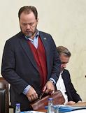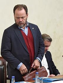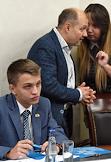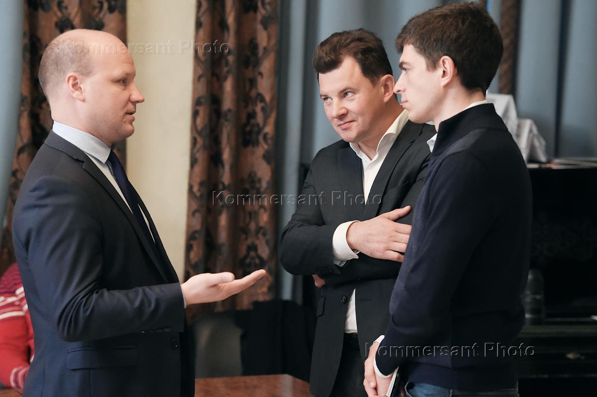 Первое заседание Экспертного совета по позитивному детскому контенту. Член комитета Государственной думы (ГД) России по обороне Роман Романенко (в центре) перед началом заседания.