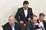 Первое заседание Экспертного совета по позитивному детскому контенту. Член комитета Государственной думы (ГД) России по обороне Роман Романенко (второй слева) и заместитель председателя комитета ГД России по культуре Александр Шолохов (слева) перед началом заседания.