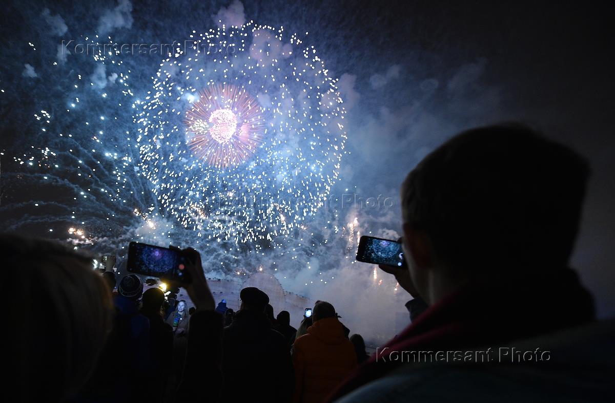 Церемония закрытия IX Московского международного фестиваля "Круг света" - свето-пиротехническое шоу "Код единства" на Гребном канале.