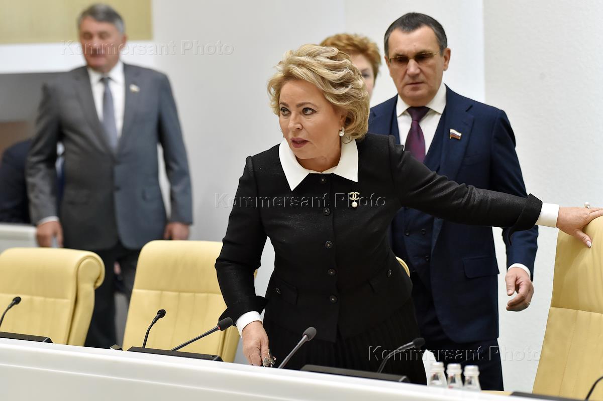 Пленарное заседание Совета Федерации (СФ) России. Председатель СФ России Валентина Матвиенко (справа) во время заседания.