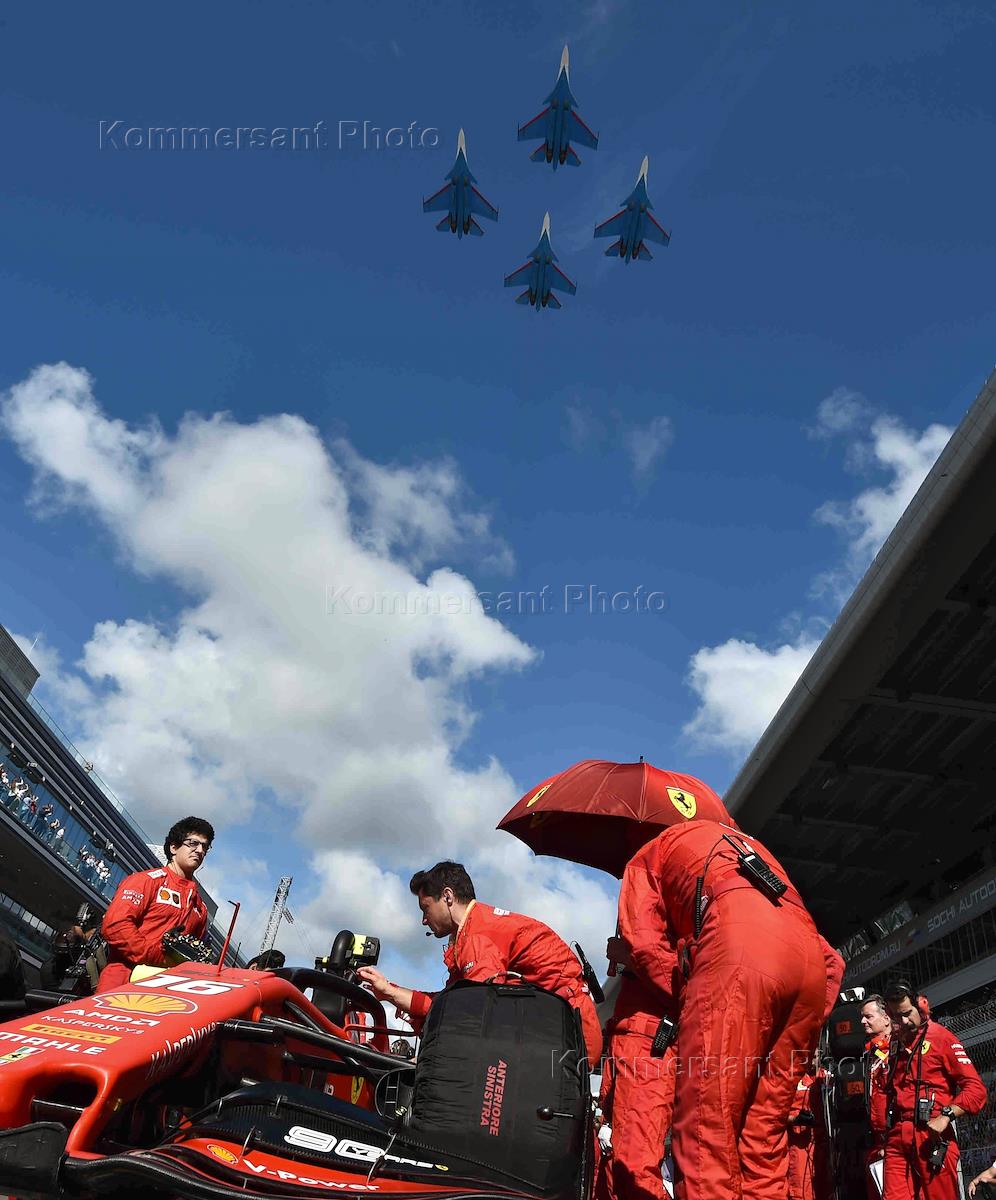 Российский этап Чемпионата мира по кольцевым автогонкам "Формула-1" ВТБ Гран-При России 2019. Команда Ferrari во время подготовки к заезду.