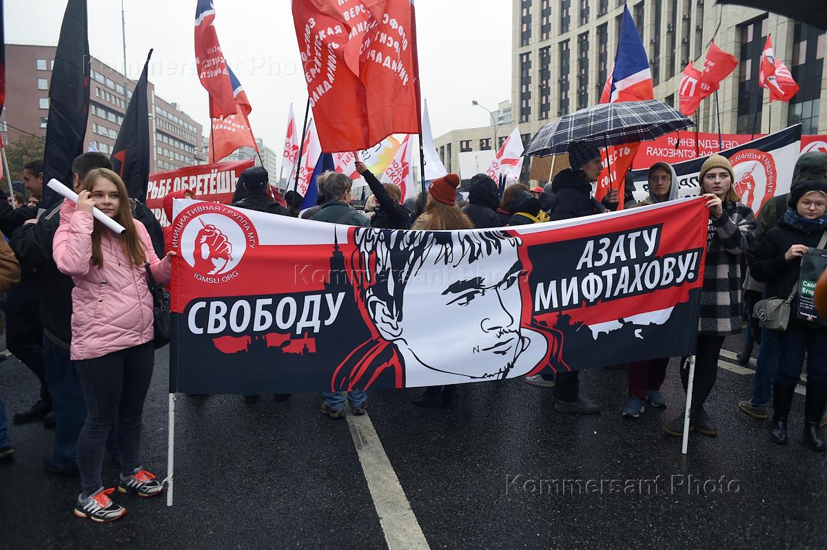 Participants of the rally to support political prisoners at Academician Sakharov Prospect.
