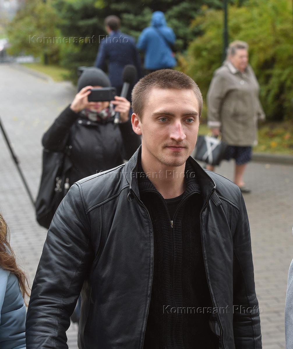 Актер Павел Устинов, обвиняемый в нападении на бойца ОМОН во время несанкционированной акции протеста 3 августа 2019 года, перед началом заседания Московского городского суда (Мосгорсуд).