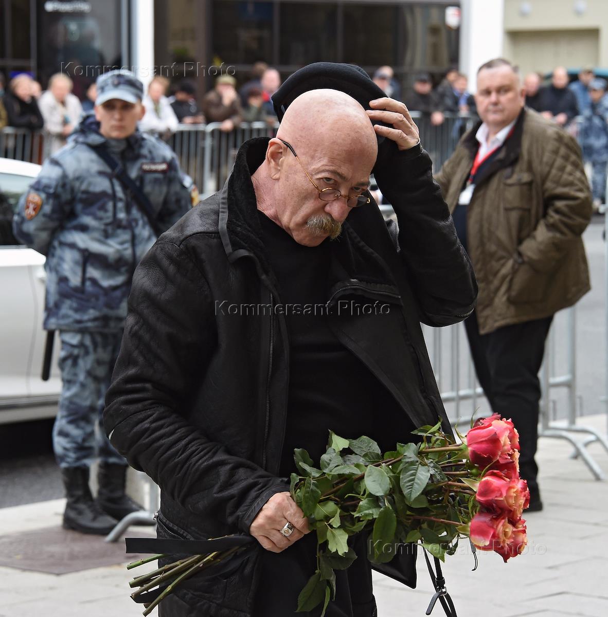Memorial service for Lenkom theater's Artistic Director Mark Zakharov at the Lenkom theater. Singer Alexander Rosenbaum before the service.