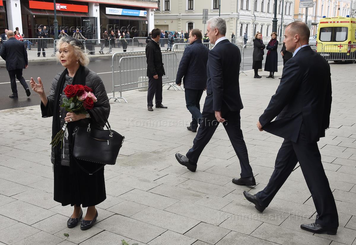 Memorial service for Lenkom theater's Artistic Director Mark Zakharov at the Lenkom theater. Chairman of the Moscow City Duma Alexander Shaposhnikov before the service.
