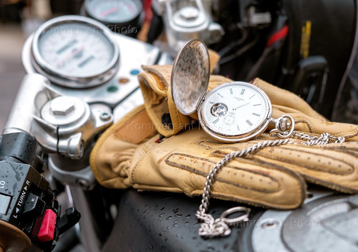 The annual charity vintage motorcycle ride The Distinguished Gentleman's Ride in St. Petersburg. Genre photo. A man smoking a cigar.
