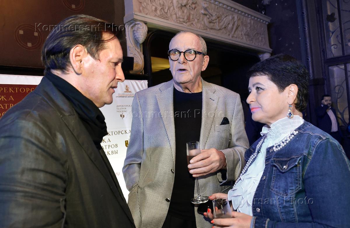 Meeting of the Moscow Theaters Directors Lodge on the its opening and on continuing the Year of Theater in Russia in the P.P. Smirnov Mansion. From left: actors Igor Mirkurbanov, Emanuel Vitorgan and his wife Irina before the meeting.