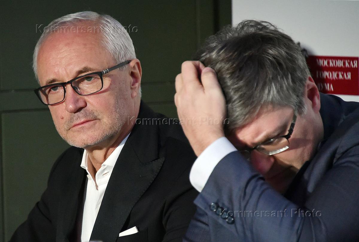 Meeting of the Moscow Theaters Directors Lodge on the its opening and on continuing the Year of Theater in Russia in the P.P. Smirnov Mansion. Deputy of the Moscow City Duma Evgeny Gerasimov (left) and Deputy Minister of Culture of Russia Pavel Stepanov (right) before the meeting.